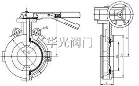 D71F46、D371F46襯氟手動對夾蝶閥的主要外形尺寸: