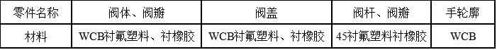 J45F46-10/16C襯氟直流式截止閥主要零部件材料表:
