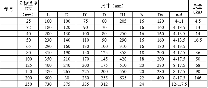 J45F46-10/16C襯氟直流式截止閥主要連接尺寸及重量: