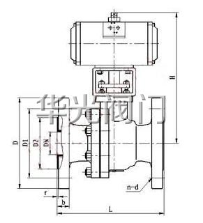 Q641F46-10/16C氣動襯氟球閥主要外形尺寸與連接尺寸(mm):