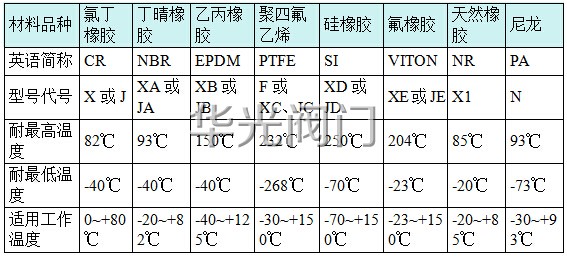 D941X-10/16Q電動軟密封中線蝶閥密封材料選用和适用溫度: