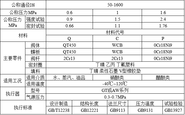 D643X-10/16Q氣動法蘭軟密封偏心蝶閥主要性能規範: