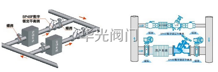 SP45F、SP15F數字鎖定平衡閥設有開啓度指示、開度鎖定裝置及用於流量測定的測壓小閥,隻要在各支路及用戶入口裝上适當規格的平衡閥,並用專用智能儀表進行一次性調試後鎖定,将系統的總水量控制在合理的範圍内、從而克服瞭“大流量,小溫差”的不合理現象。SP45F、SP15F平衡閥是供熱系統中的理想産品。既可安裝在供水管上,也可以安裝在回水管上,一般我們建議安裝在回水管上,尤其對於高溫環路,爲方便調試,更要裝在回水管上,安裝瞭平衡閥的供(回)水管不必再設截止閥。