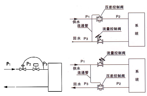 安裝在用戶回水管上確保用戶壓差爲恒定值,圖中①②③爲用戶系統。