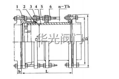 VSSJAFC型可拆式雙法蘭傳力接頭是在法蘭松套補償接頭的基礎上增設法蘭短管及傳力螺杆而成,次類型的補償接頭與松套補償接頭和松套限位補償接頭不同的是它的補償量是指在安裝及拆卸過程中的調節量,一旦将所有的螺母擰緊,它是剛性連接的,可以傳遞軸心力,從而保護閥門、泵等設備。