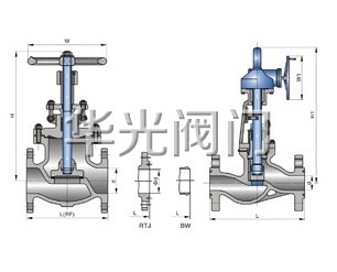 4、大口徑、高壓力截止閥根據關閉力的需要閥杆的傳動方式採用升降杆,並配有滾動軸承式採用傘齒輪以減輕關閉力。