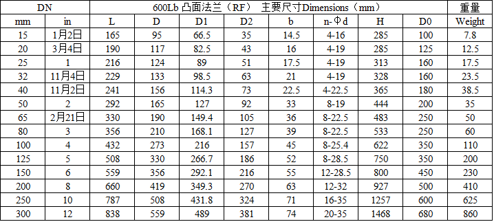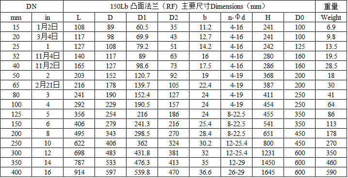 J41H-150LB美标鑄鋼截止閥主要外形尺寸: