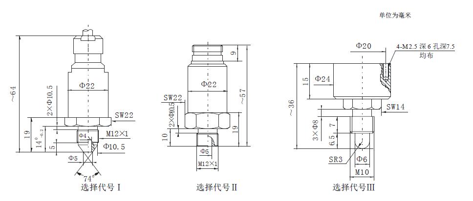 | Ⅱ | M12×1外螺紋(平口),型式Ⅱ(接插件連接) | |||||||||||||
