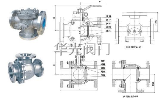 Q45F的T型三通球閥有T形和L形。T形能使三條正交的管道相互聯通和切斷*三條通道,起分流、合流作用。L形隻能連接相互正交的兩條管道,不能同時保持*三條管道的相互連通,隻起分配作用。根據流向的不同,有些可以選用兩閥座密封,而有些流向則必須選用四閥座結構。T型三通球閥造型美觀,結構緊湊合理,不僅可實現介質流向的切換,也可使三個通道相互連通,靈活控制管路中介質的合流或分流。