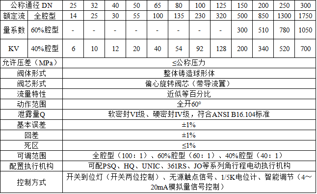 PQ940F-10/16/25Q電動球墨鑄鐵蝸輪偏心半球閥主要技術參數及性能指标: