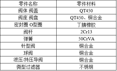 500X-10/16Q洩壓閥主要零件材料: