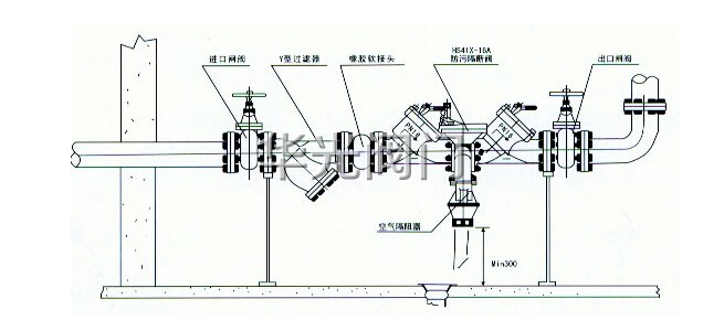 HS41X-10/16C-A鑄鋼倒流防止器典型安裝示意圖: