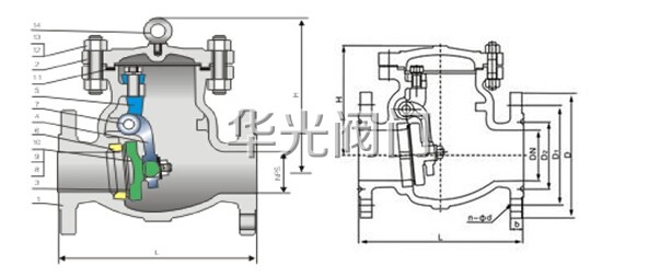 | 結構形式 | 螺柱閥蓋升降式止回閥 | |