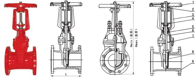 明杆消防閘閥結構圖: