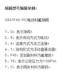 連接方式代号:1表示内螺紋、4表示法蘭式、6表示焊接、7表示對夾式;