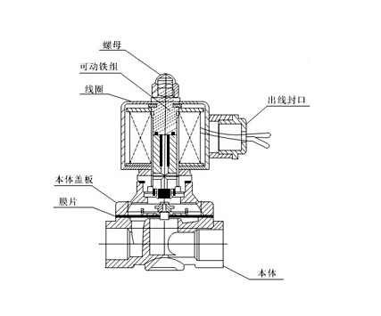 直動(dòng)式電(diàn)磁閥工作原理:通電時,電磁線圈産生電磁力把關閉件從閥座上提起,閥門打開;斷電時,電磁力消失,彈簧把關閉件壓在閥座上,閥門關閉。