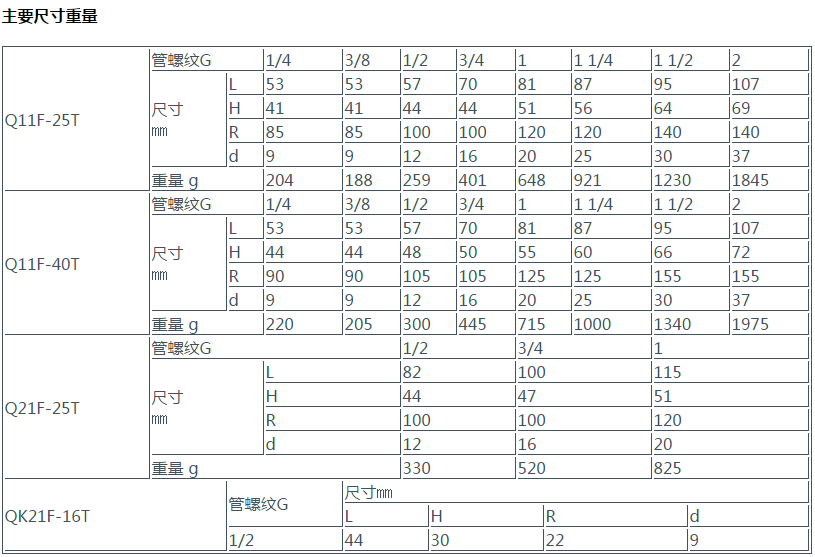 球閥型号規格尺寸