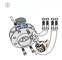 1、如圖所示,設置在兩個凸緣之間的閥預裝,注意整齊排列的螺栓孔。