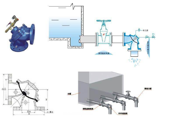 角型隔膜式排泥閥是由主閥、二位四同換向閥以及閥瓣等零件組成。當二位四通換向閥處於一态位,主閥中腔進水,上腔通往大氣,膜片在水的壓力下帶動閥瓣上升,主閥開啓,池底的泥沙等污物開始排放;當二位四通處於二态位,主閥中腔水排向水池,上腔進水,關閉主閥,停止泥沙的排放,此閥安裝在各類沉澱池的底部壁外,用以排除池底的泥沙污物。其由換向控制啓閉動作,反應迅速,關閉準確。