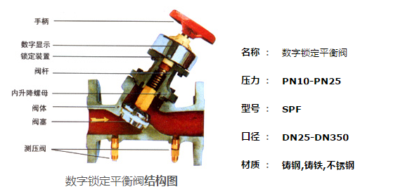 數字鎖定平衡閥是一種特殊功能的閥門,有定量的測量功能和調節功能,系統調試時,調試人員通過與專用智能儀表人機對話,對平衡閥進行調整,即可實現系統的水力平衡。它具有良好的流量調節特性,相對流量與相對開度呈線性關系。有精確的閥門開度指示,*小讀數爲閥門全開度的1℅。有可靠的開度鎖定記憶裝置,閥門開度變動後可恢複至原鎖定位置。有截止功能,安裝瞭平衡閥就不必再安裝截止閥。