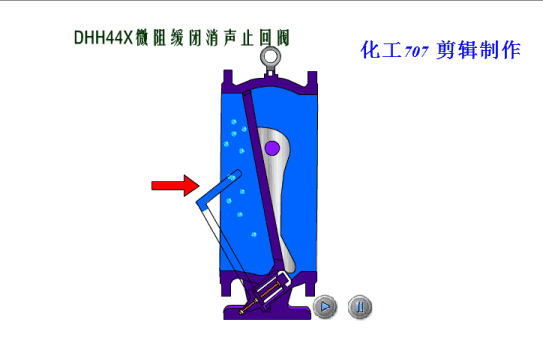 在閥門用於止排水管道,安裝在水泵出口處,用來防止介質倒流或消除破壞性水錘,當水泵開始工作或防止壓力開始升高時。閥瓣在進口壓力作用下打開,介質大量通過,同時介質進入管壁氣缸内,使活塞運動到工作位置,當水泵停止或進口壓力下降時,閥瓣在回水壓力作用下在先快速關閉百分之九十,由於活塞處於工作位置,剩百分之十左右的關閉形成,由活塞組織緩慢關閉,從而消除瞭快速關閉所形成的水錘。