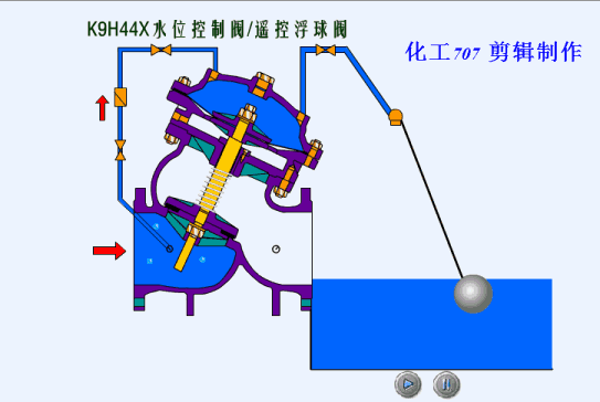 主要用於工礦、企業、高層建築中水箱、水池、水塔的自動供水系統中,確保水池液位在規定的高度内,利用水力作用下,當水位下降時,小浮球閥打開,主閥控制室内的水經浮球閥流向水池,主閥瓣在進口壓力水的作用下打開,向水池大量供水,當水位上升到規定的水位過後,小浮球閥關閉,控制室内的壓力升高,主閥關閉。